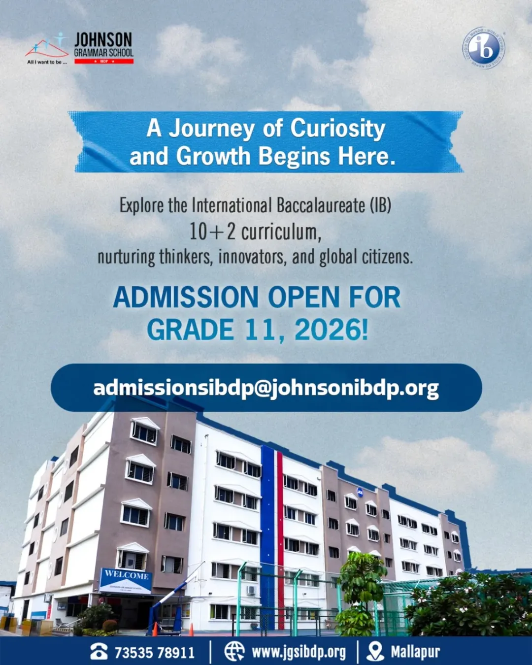 The school’s impeccable track record, efficient and committed management, caring and capable teaching staff, modern infrastructure, and convenient fee structure make the IBDP at Johnson an enriching and transformative experience for both Grade 11 students and their families.